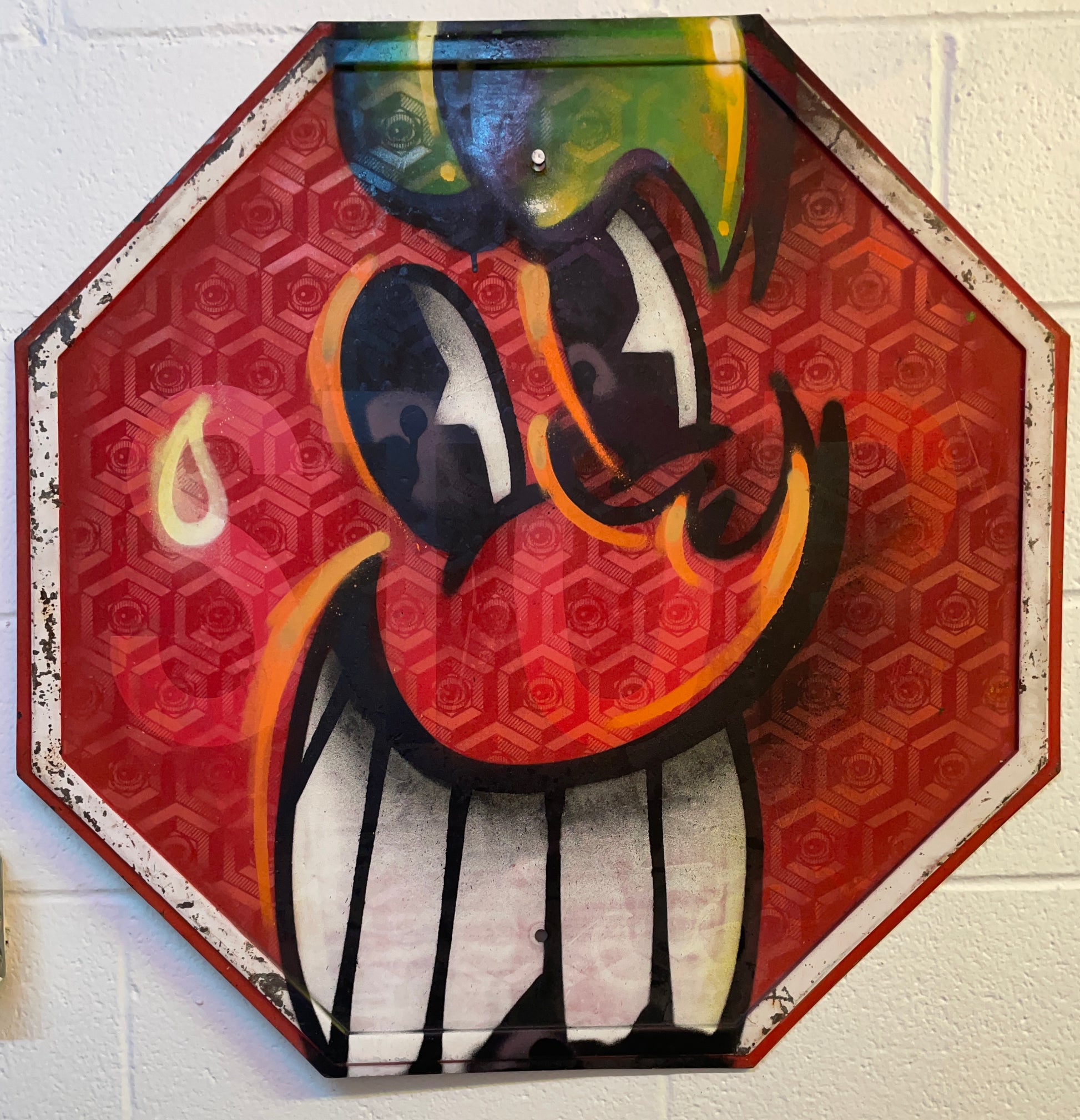 @Eyez Collaboration with Miami Artist ATOMIK on a reclaimed vintage (heavy steel) stop sign 🛑