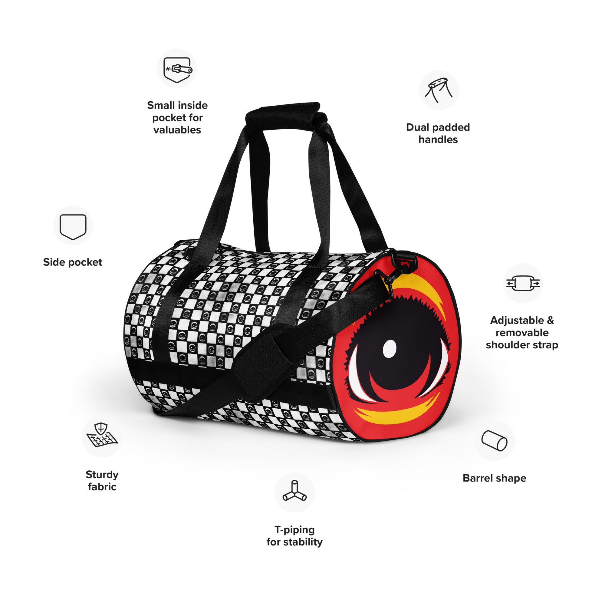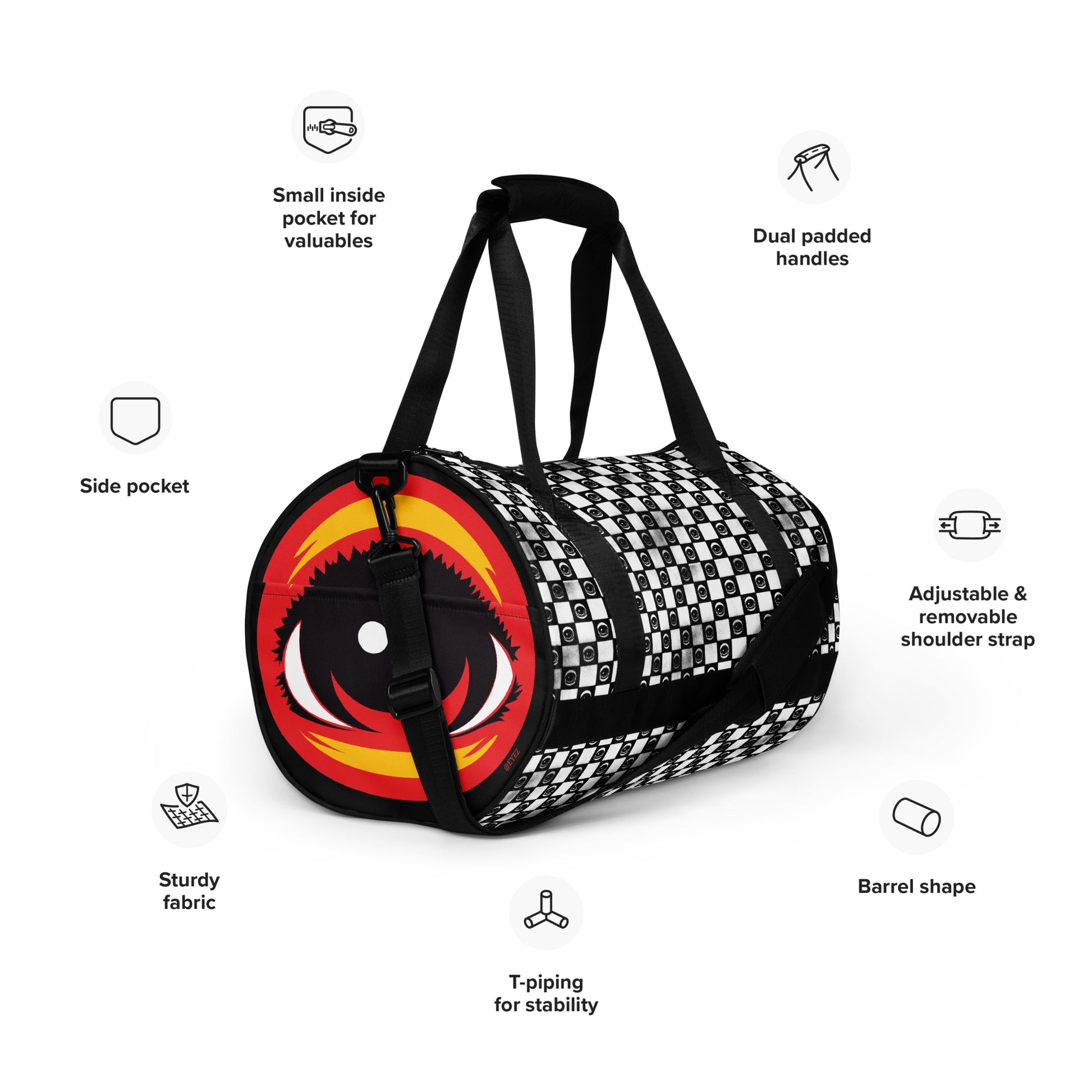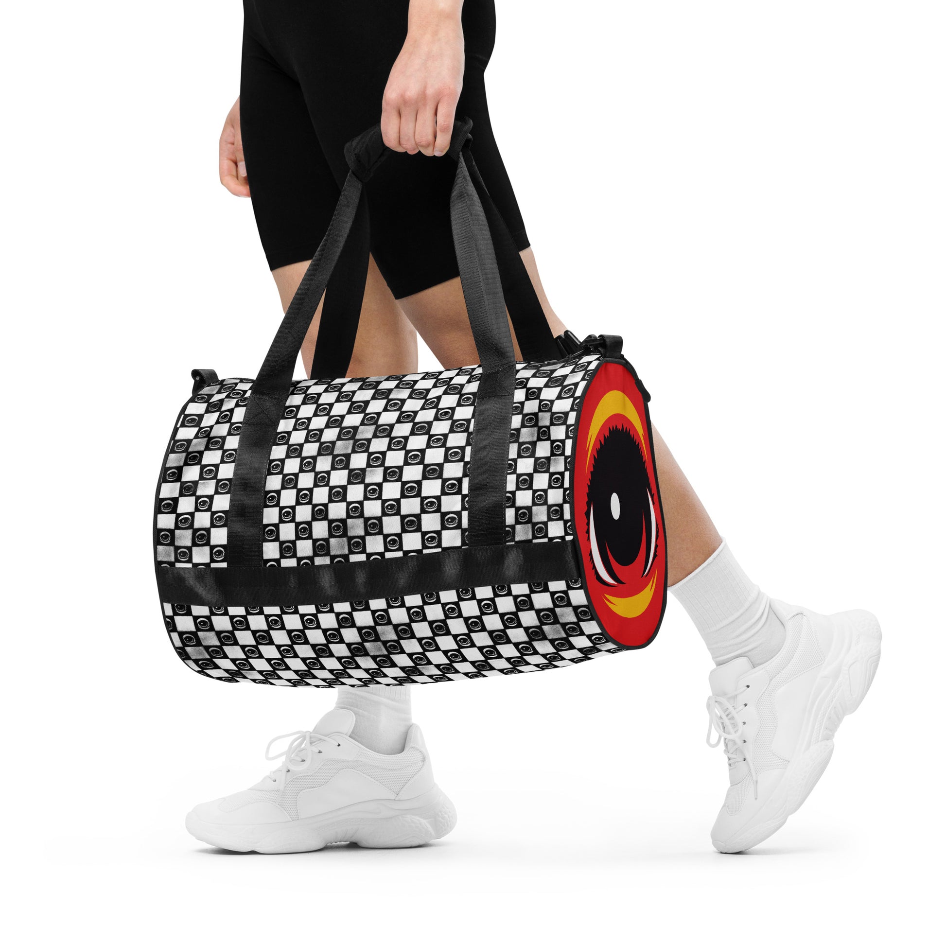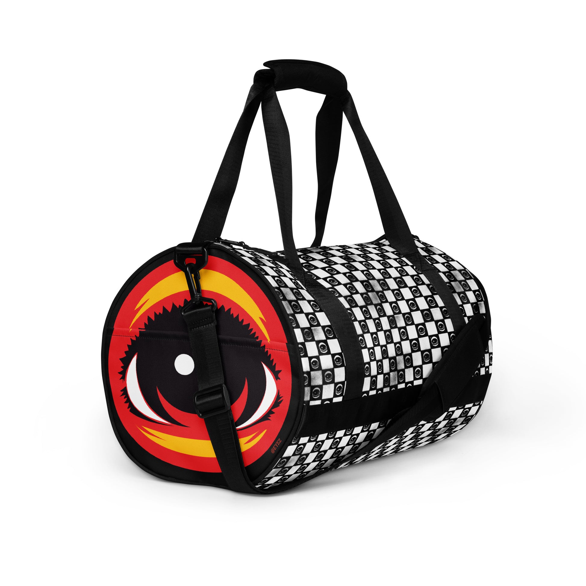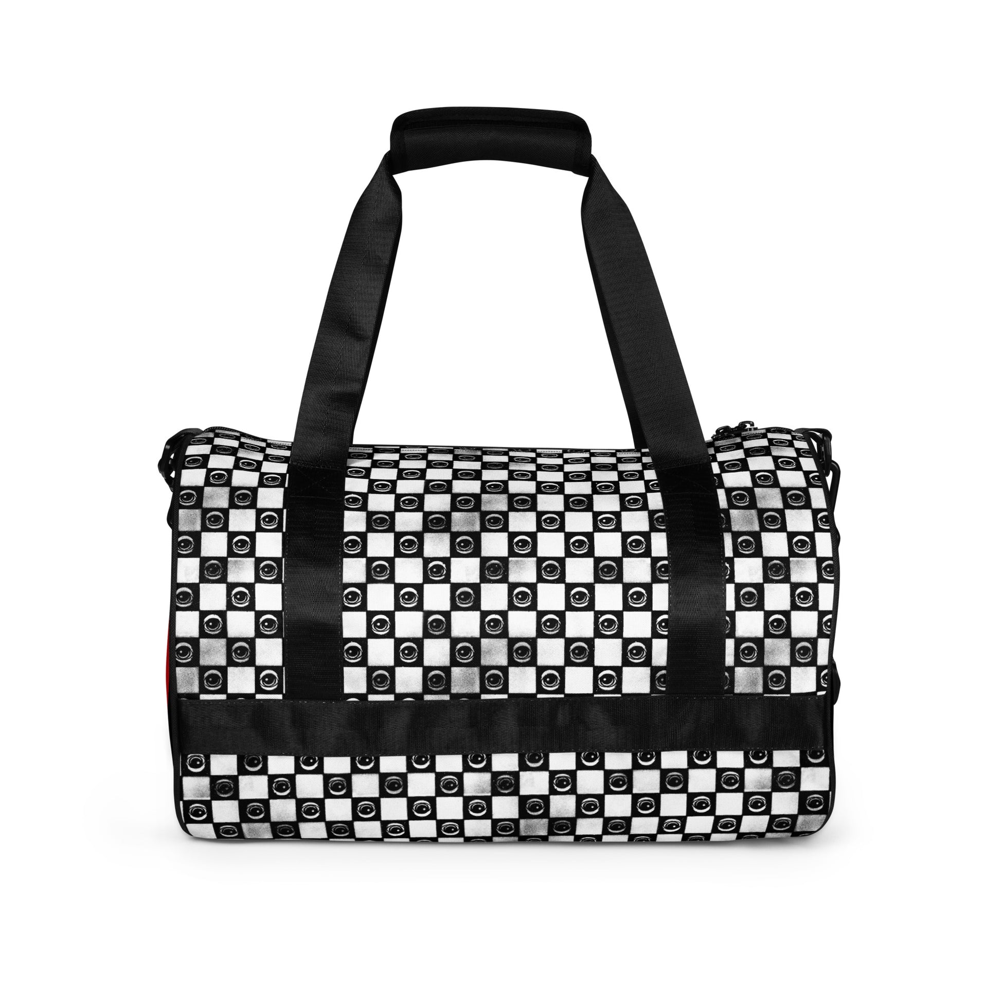 Add some looks with this all-over print gym bag. Made from 100% polyester and sturdy, water-resistant fabric, this bag is fun meets function. And it’s got pockets!