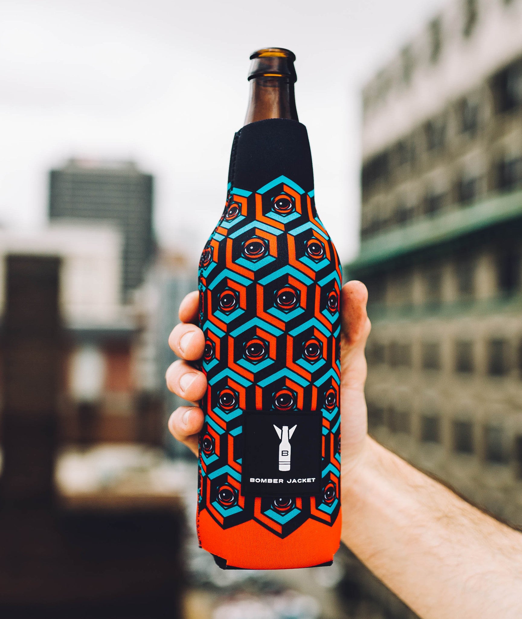 Make your 22 ounce bottle looking classy with this EYEZ Cubed #EYEZonPattern ...all while keeping it icy. Made of high-quality sublimation printed neoprene, finished off with the signature Bomber Jacket patch and metal zipper.
