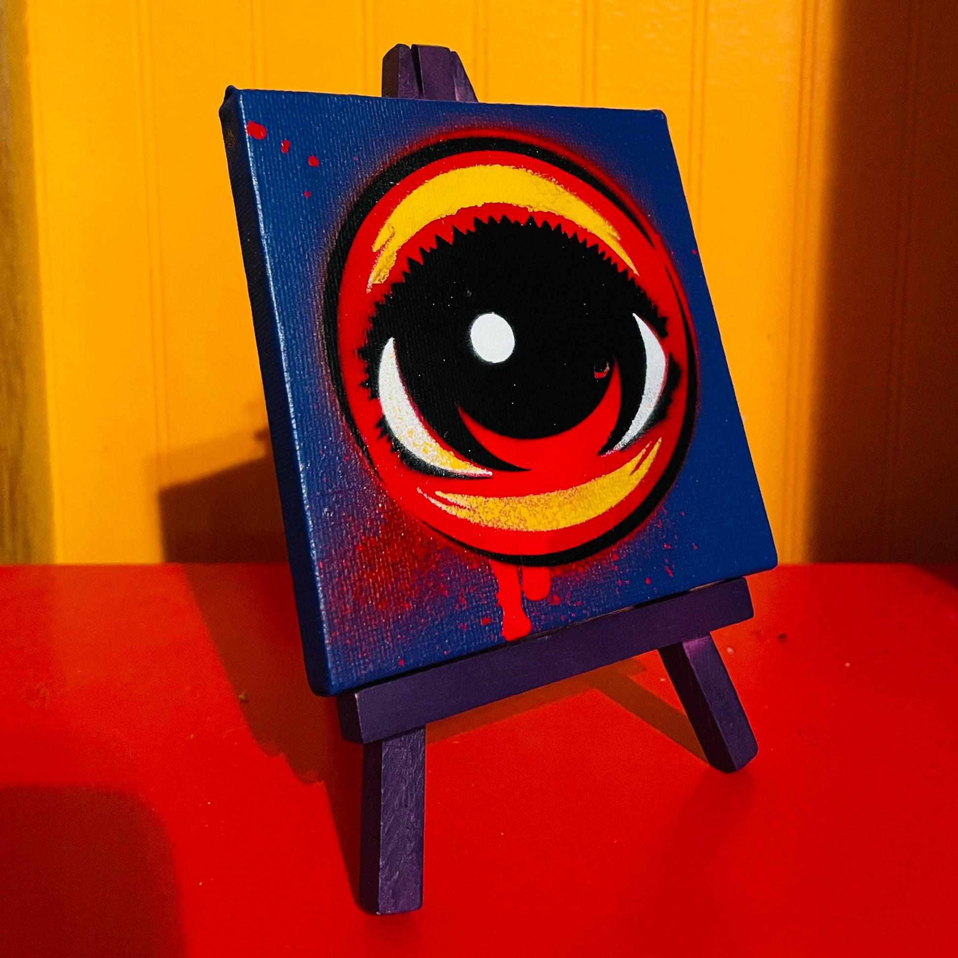 Want an original EYEZ painting but can’t afford a large painting price?! Here your chance with a original MiniEyez 4inch canvas with a easel to keep an eye on things at your place!