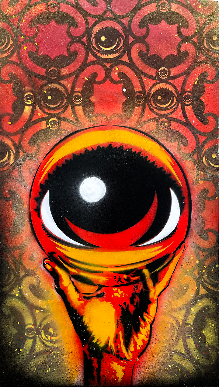 23.5 x 41.5 Original Painting on reclaimed steel panel featuring the Moraccan Eyez pattern and the eye hand coordination stencils!