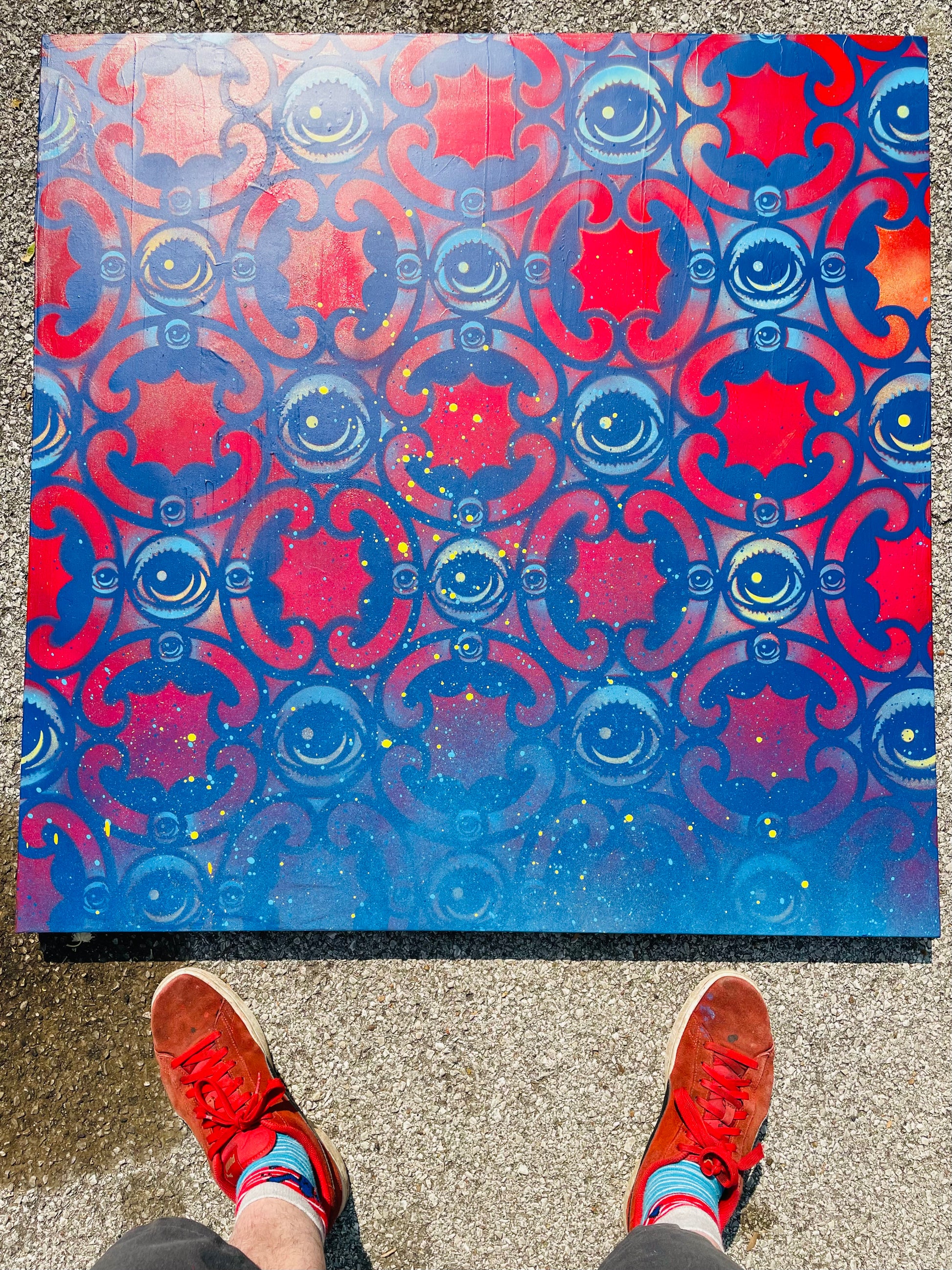 Eyez was Influenced by Arabic Moroccan patterns in this original 36x36 #eyezonpatterns painting on a 1.5 inch deep gallery wrapped canvas.