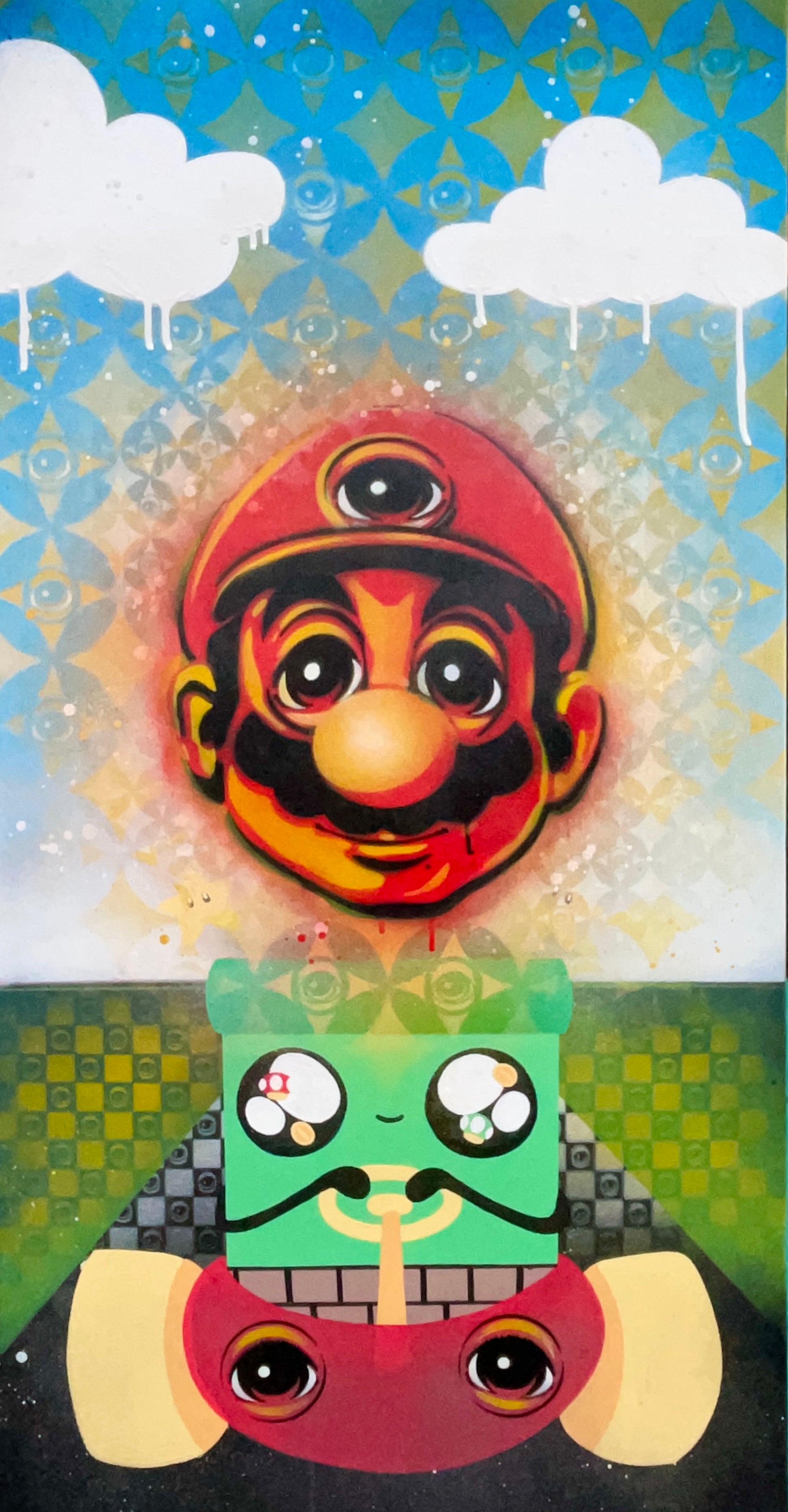 @Eyez Collaboration with NEZ aka Vanessa Garza from the 2023 C👁LLAB👁RATE exhibit in Chicago. 24x48 Gallery Wrapped Canvas featuring Mario!