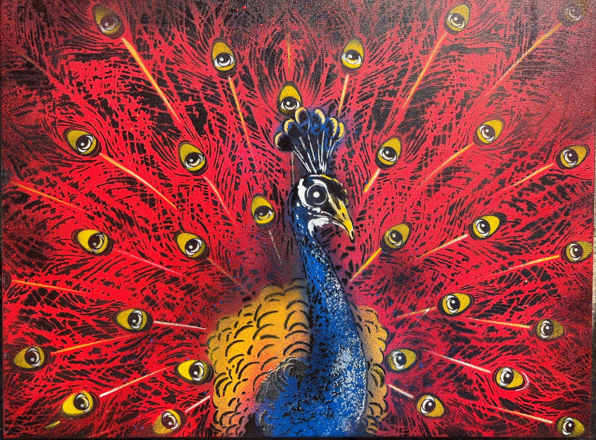 18x24 extremely detailed Peacock painting on gallery wrapped canvas. This canvas comes to life with Augmented Reality
