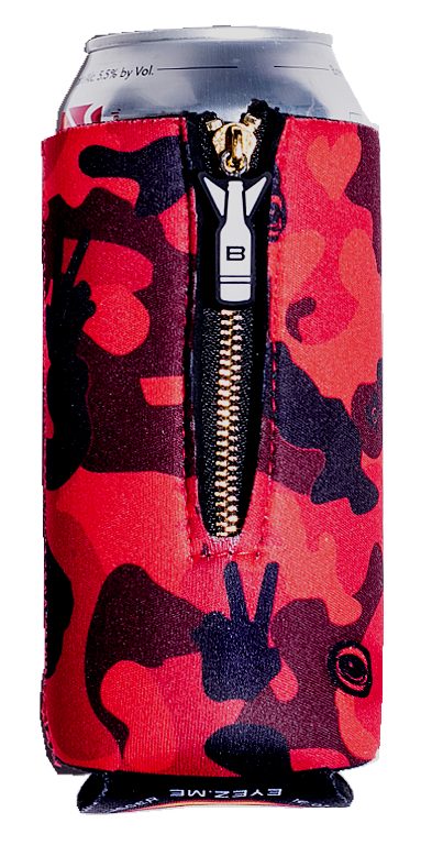 This is not camo for war...If you look closer you will notice the hidden peace signs in Hearts and EYEZ! This is a limited release and will not be printed again. Every C-16 is finished off with a signature patch and gold alloy zipper. Fit's all 16 oz cans, yes even energy drinks! Made with quality since MMVX.