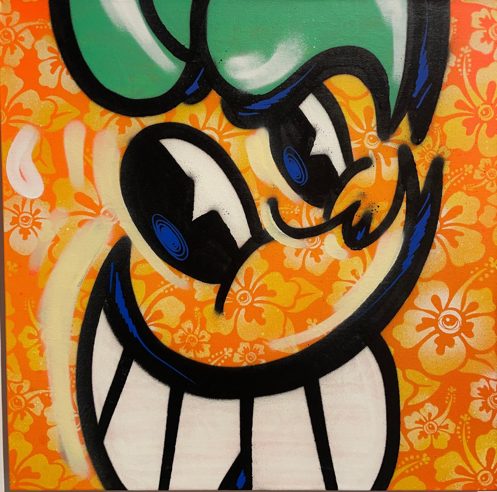 Collaboration with the Orange guy of Miami "Atomik" with the eye guy of Saint Louis "Eyez" 20x20 canvas based on Mural that painted over paint louis. this amazing piece is apart of the C👁LLAB👁RATE exhibit in Saint Louis.