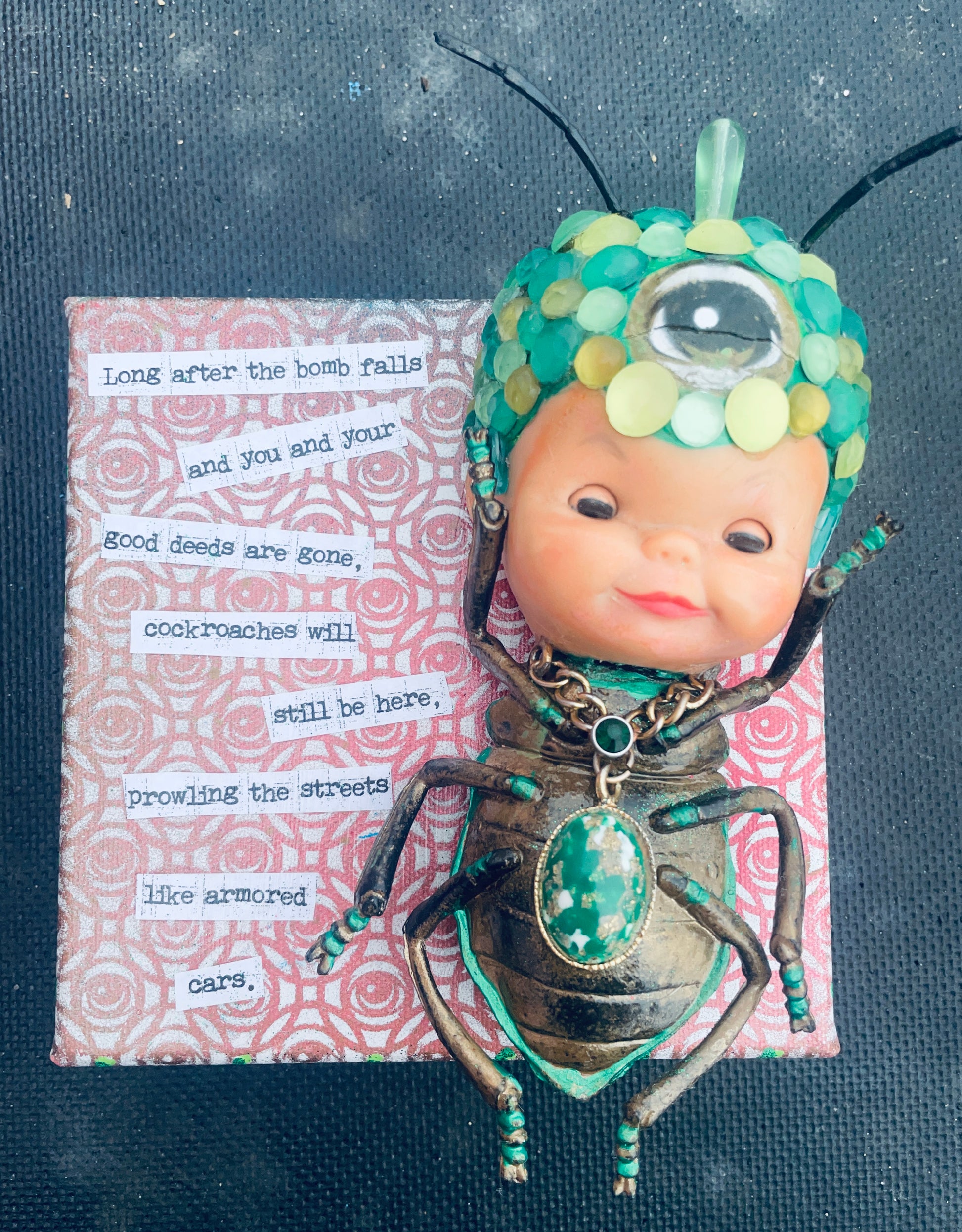 @Eyez Collaboration with Memphis Artist Jana Wilson Gilbertson @VintagiaMemphis  this Woke BabEYE Bug 5.5 x 5.5 inch Canvas with Embellishments.